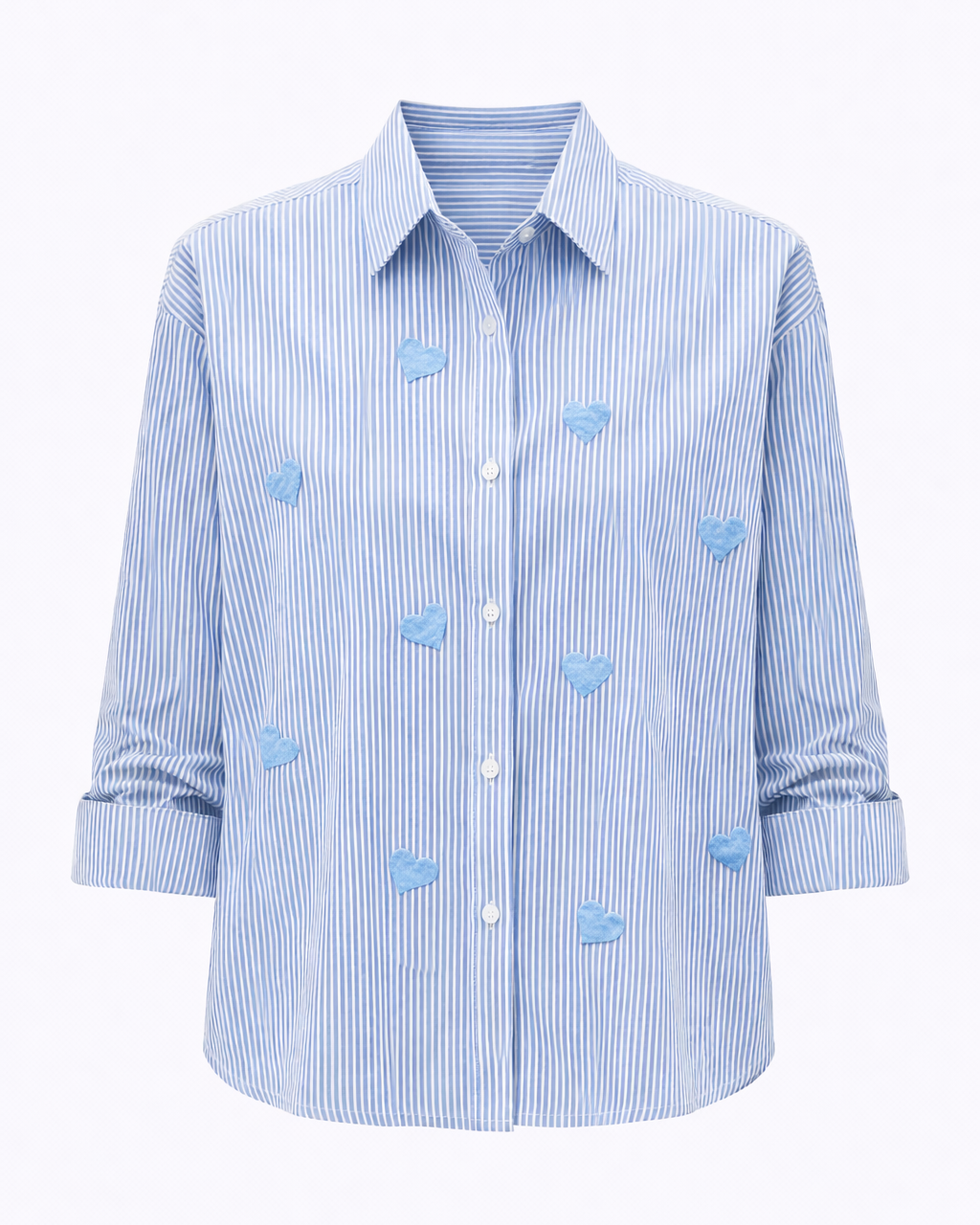 Nell Stripe Hearts Shirt 'Baby Blue Hearts'
