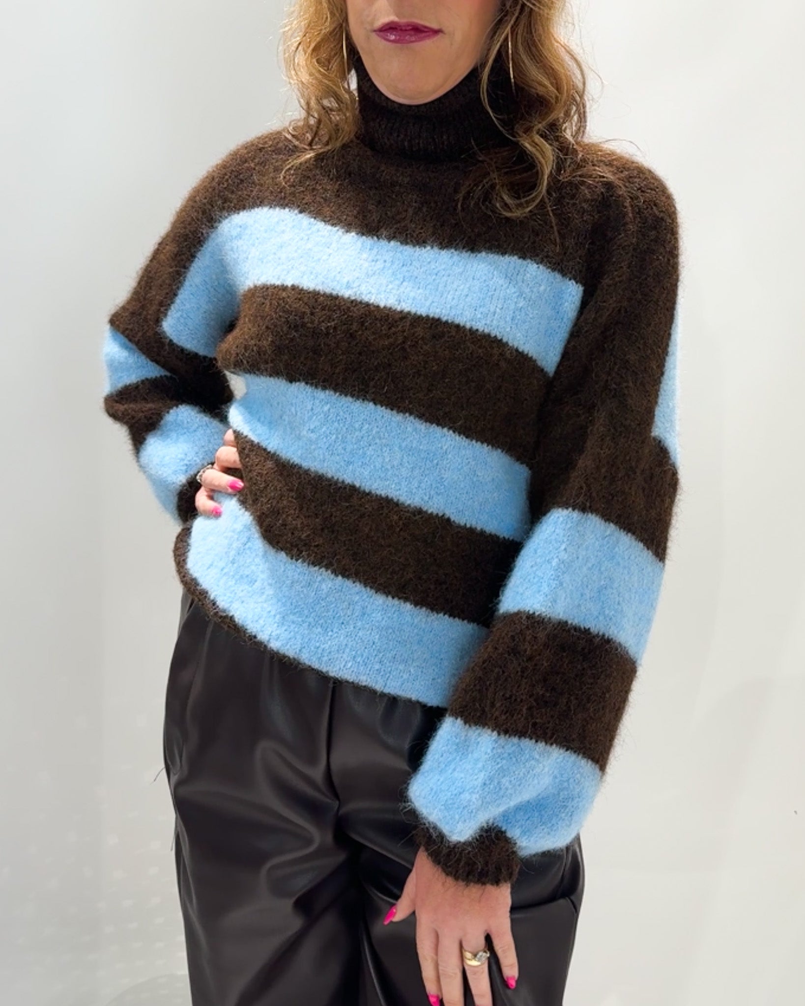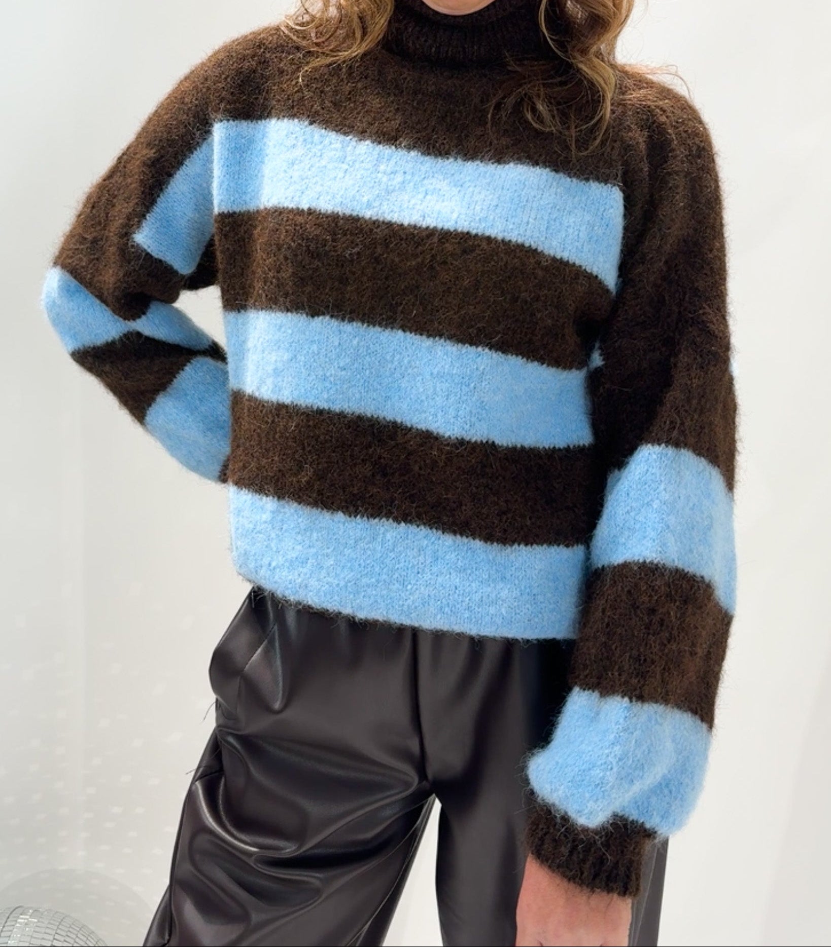 Carol Polo Neck Knit Jumper 'Blue & Brown'