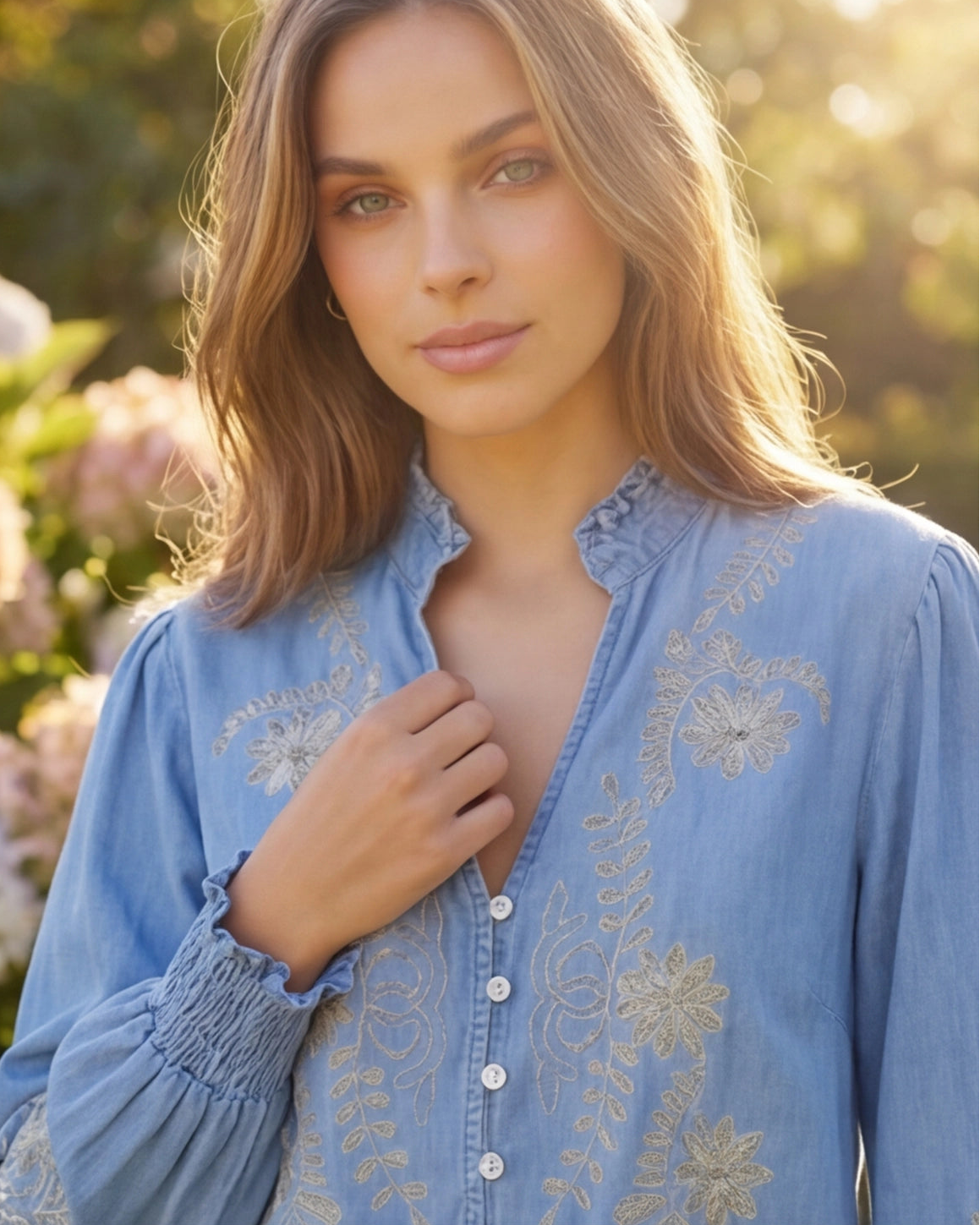Belle Embroidered Shirt 'Denim'