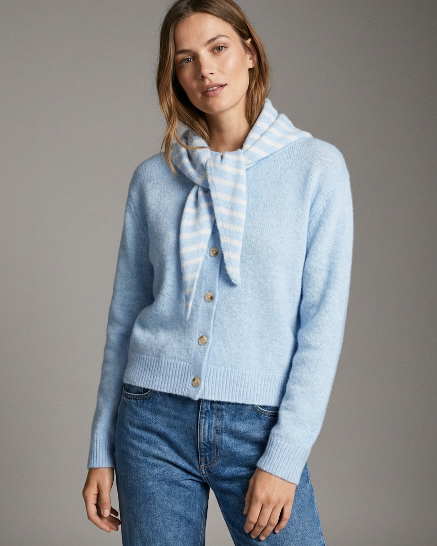Dahlia Wool Cardigan with Scarf 'Baby Blue'